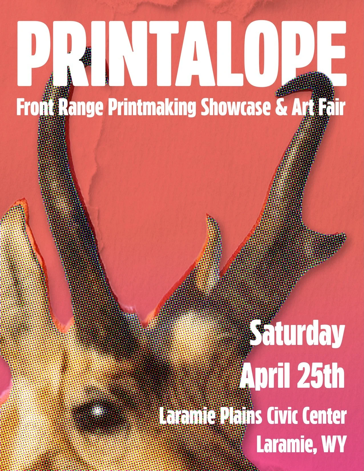 The Printalope is a one-day print fair at the Laramie Plains Civic Center in Laramie, WY. This event features printmaking artists from across the region vending works of traditional print media and printmaking workshops hosted by local arts organizations.