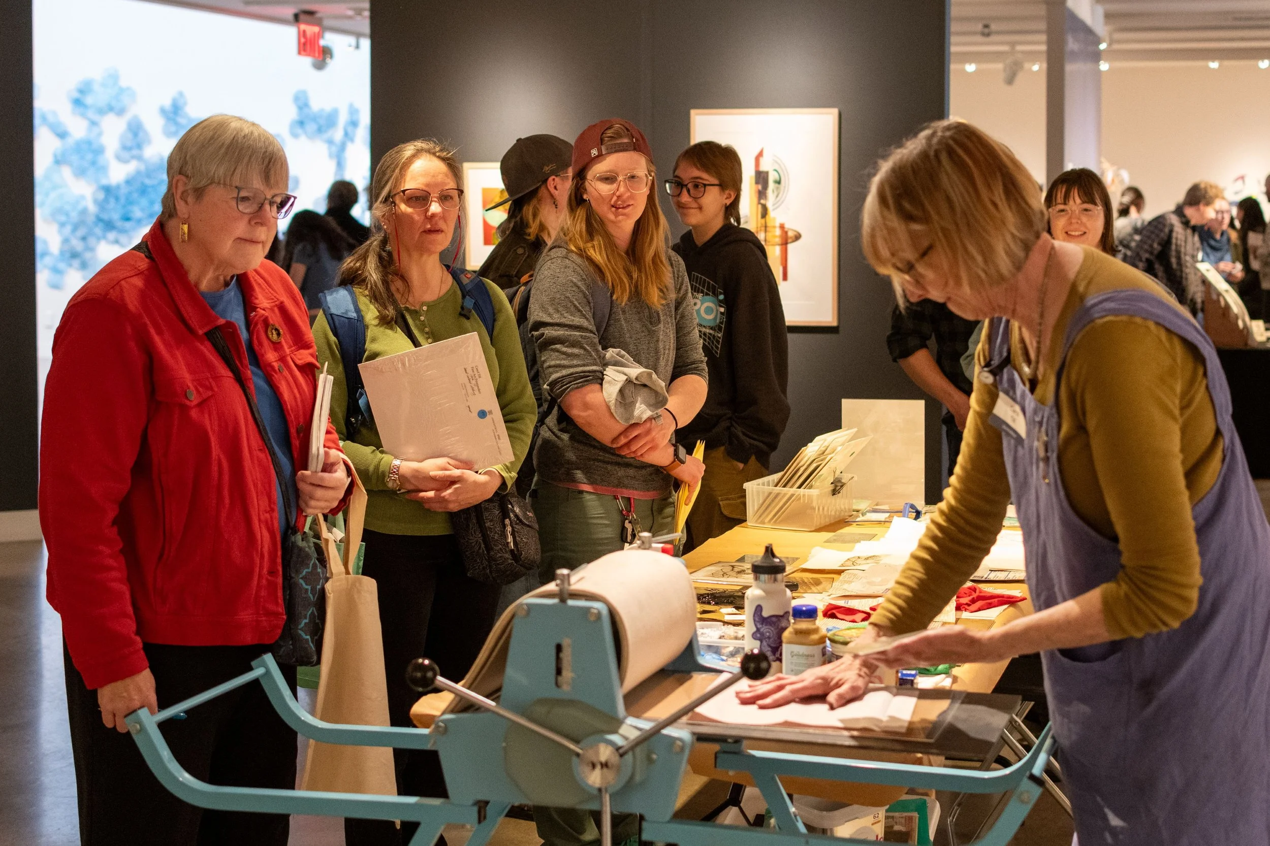 Learn about printmaking, meet artists, and see and purchase original prints from more than 100 local printmakers. A wide array of printmakers ranging from young students new to the medium to established professionals with gallery representation will be participating. Meet many artists all in one place. Browse through their portfolios of prints. Buy some affordable art!