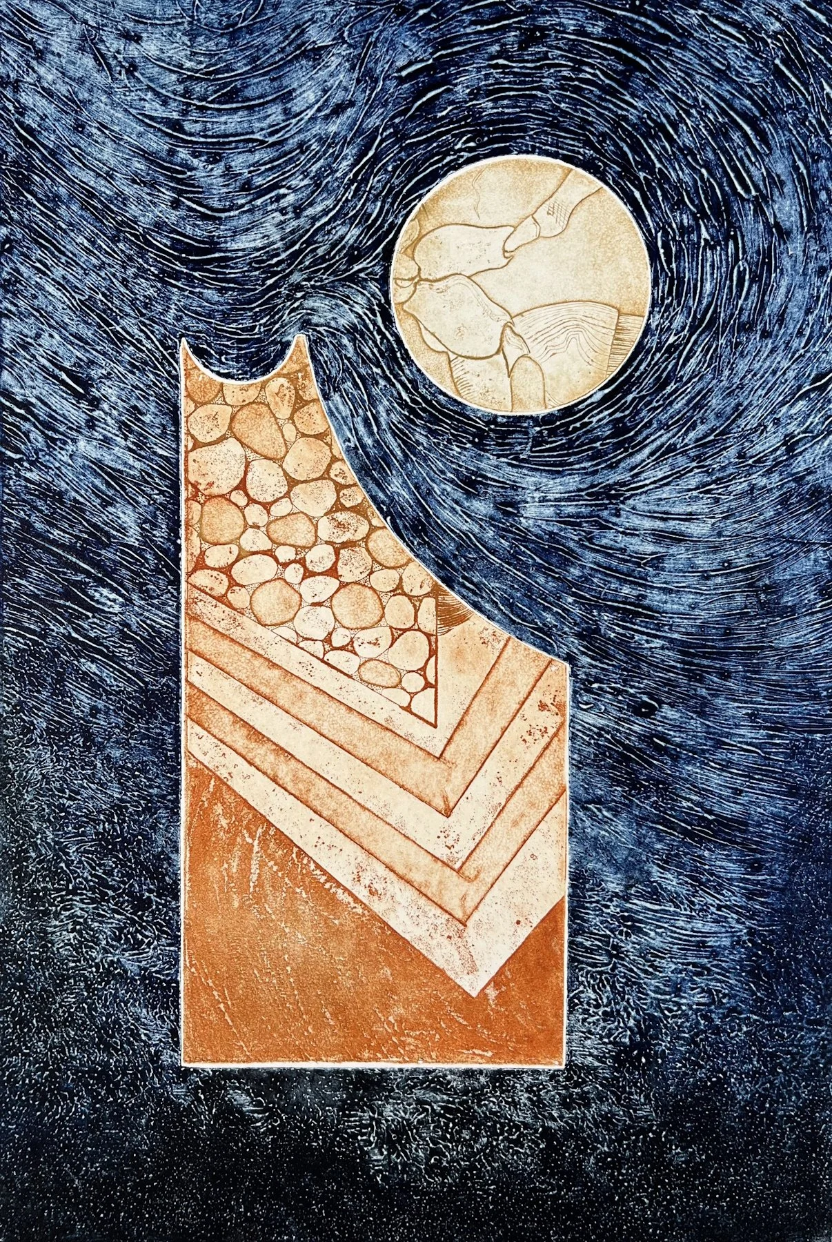 A group of four women printmakers who unexpectedly came together as friends and studio mates. All of the women engage in mono prints, monotypes, solar plate etchings, and embossments. The unexpected is the new friendships. The mystery of the press reveals the unexpected images.