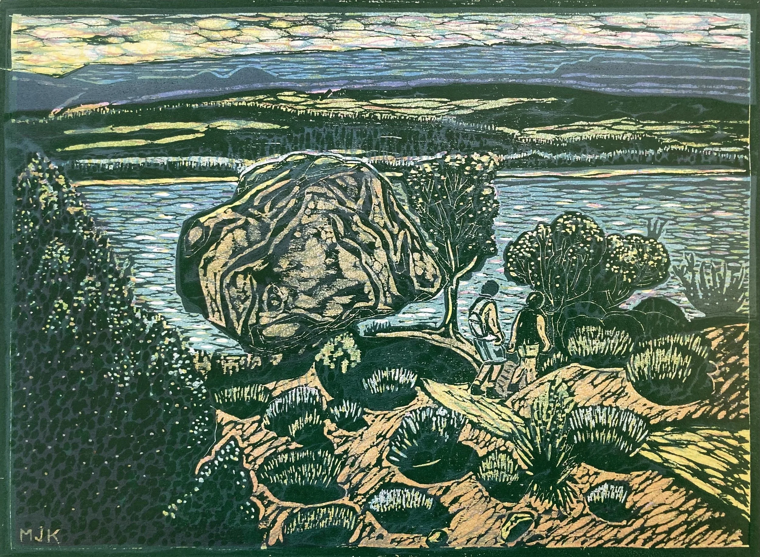 The Museum of Authenticity's exhibit, BLOCKS, includes thirteen different block prints made by nine different artists including a French-American, a German-American, an Italian-American, and a five-year-old Diné youth. The range of block print methods includes a hand-colored single wood block print, a multi-color multi-block print, a cork block print, two nail cut prints, and linoleum block prints. In addition, the only contemporary artist, Denver’s Leon Loughridge, is represented by three remarkable reduction block prints. Subjects include a still life, an artist’s self-portrait, and varied landscapes. The Museum of Authenticity provides an intimate setting for these exceptionally beautiful prints.